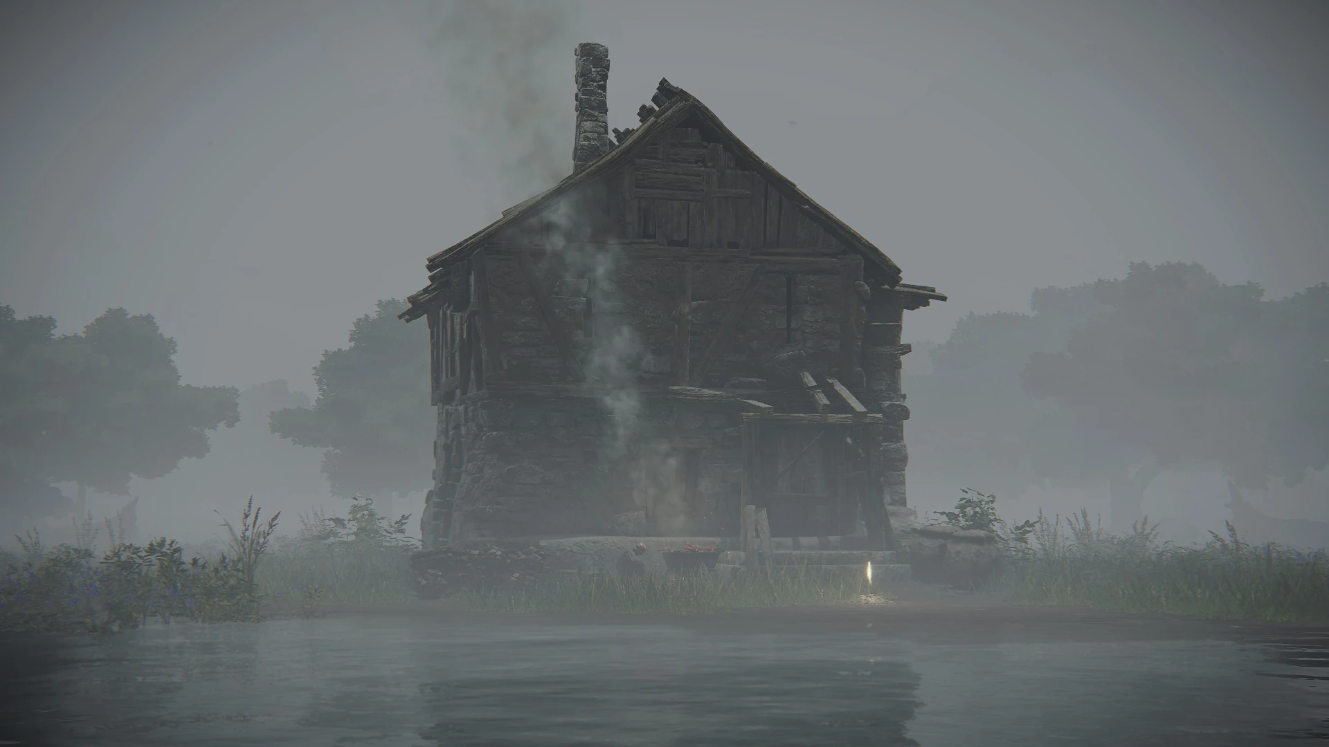 An isolated shack standing on its own in the lake, north-west of the Scenic Isle Site of Grace. Presently, it is occupied by Big Boggart, who is occupied with cooking up freshly caught "prawn" meat.
