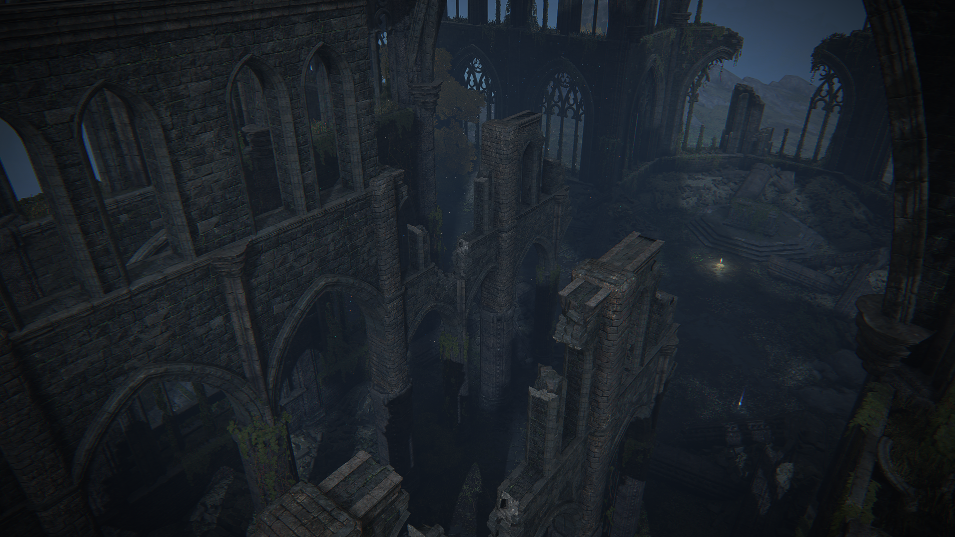 A large, dilapidated cathedral sitting atop the Moonlight Altar, a vast plateau overlooking Liurnia. The cathedral is guarded by Adula, a dragon in the service of Ranni the Witch. Within the cathedral itself, a large number of Starlight Shards can be found. Near the back of the church, there is a hole which leads to a small cavern, where Ranni's doll can be found sitting atop the corpse of her Two Fingers.