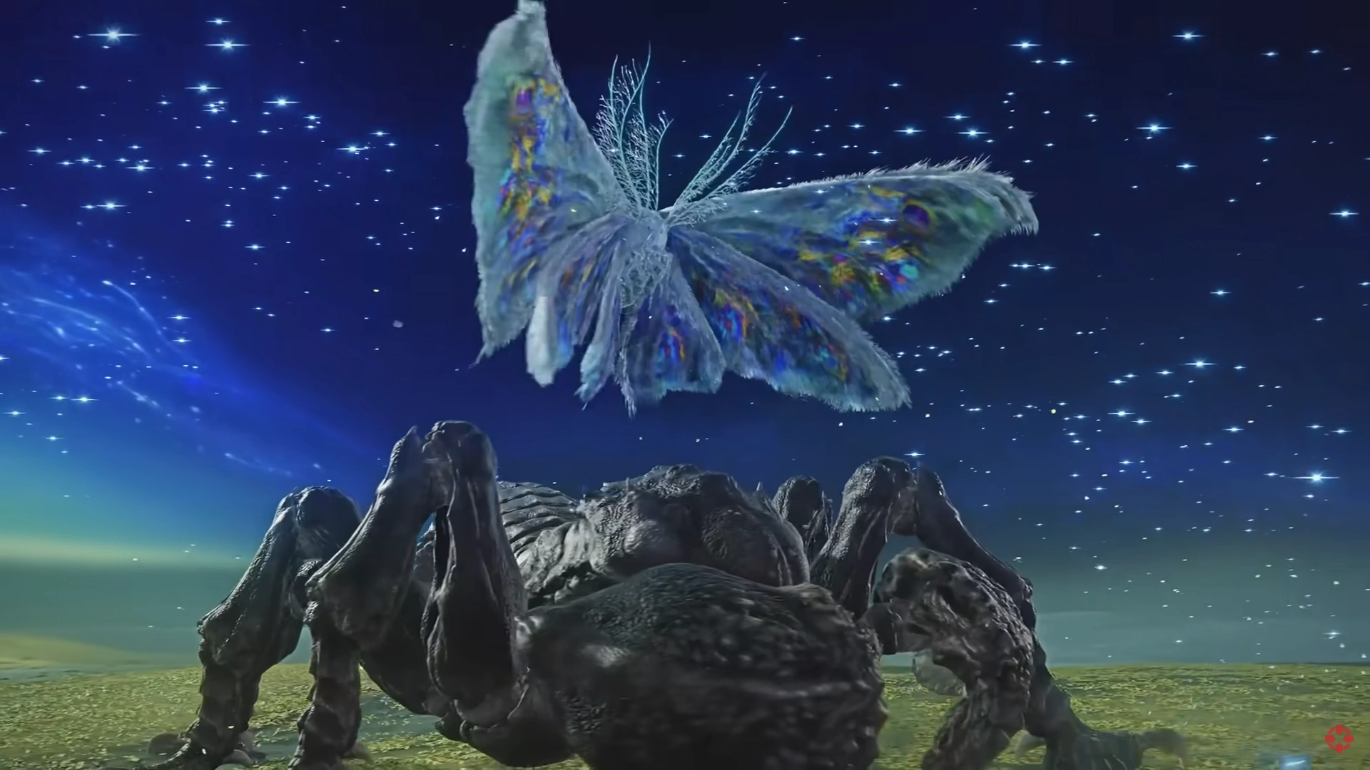 This Nightlord is two giant insects fought on the final Night of the Sentient Pest Expedition. The hardy scorpion shakes the earth when it stomps, and the white moth casts Magic and Poison spells. The sandy desert arena is covered in viridian leaves during the second phase, when the pests fight together as one. During the Everdark Sovereign version of the encounter, the bosses are revived after death by Animus, Ascendant Light, a red spectral moth.