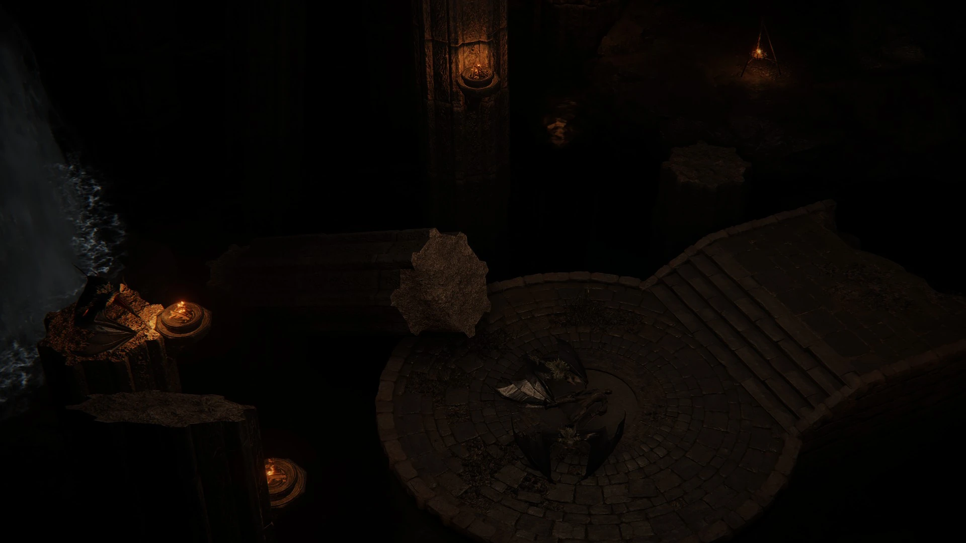 A hidden cave tucked away near the northern mouth of a river that flows through Limgrave. This network of caverns contains the ruins of an ancient civilisation, and is home to all manner of wildlife.