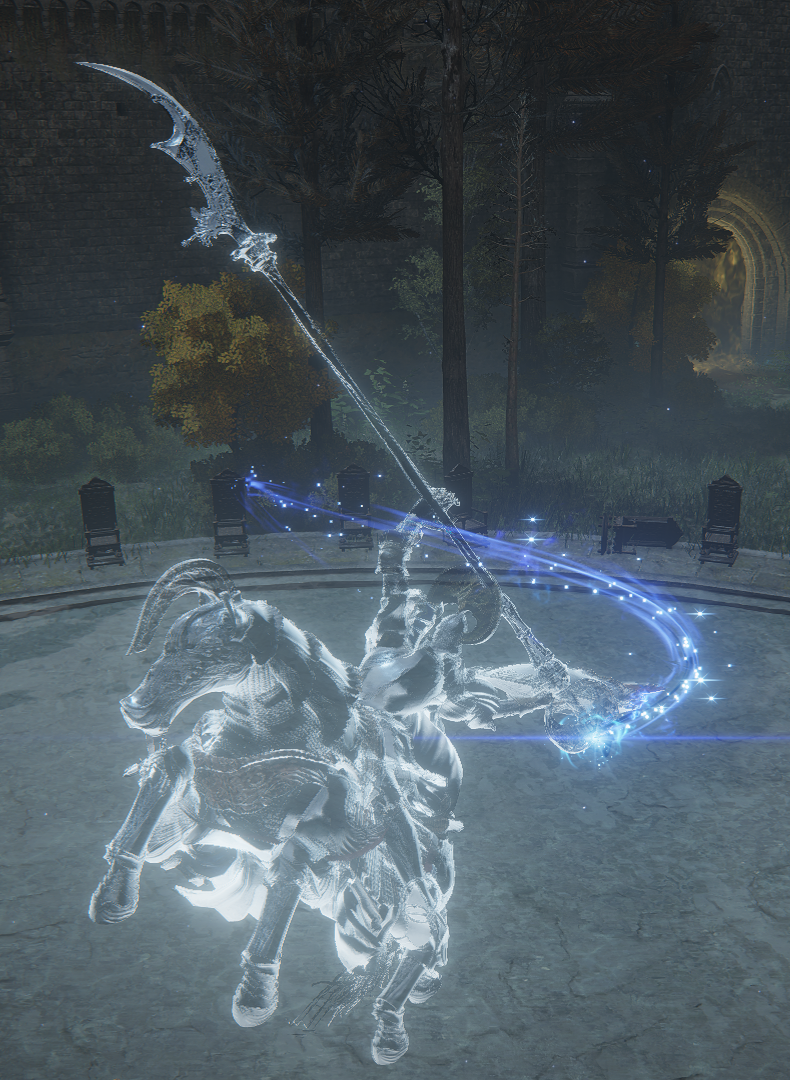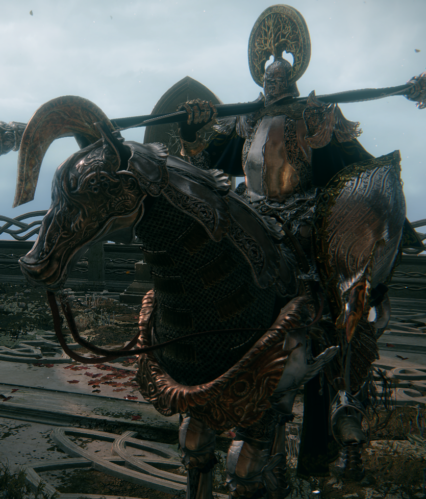 Loretta is the boss of two locations: Caria Manor and Miquella's Haligtree. Her oath-sworn spectral form—Royal Knight Loretta—is found at the former, while her corporeal body defends the latter. Loretta is mechanically similar to the Tree Sentinels and Draconic Tree Sentinels and cannot be separated from her steed.