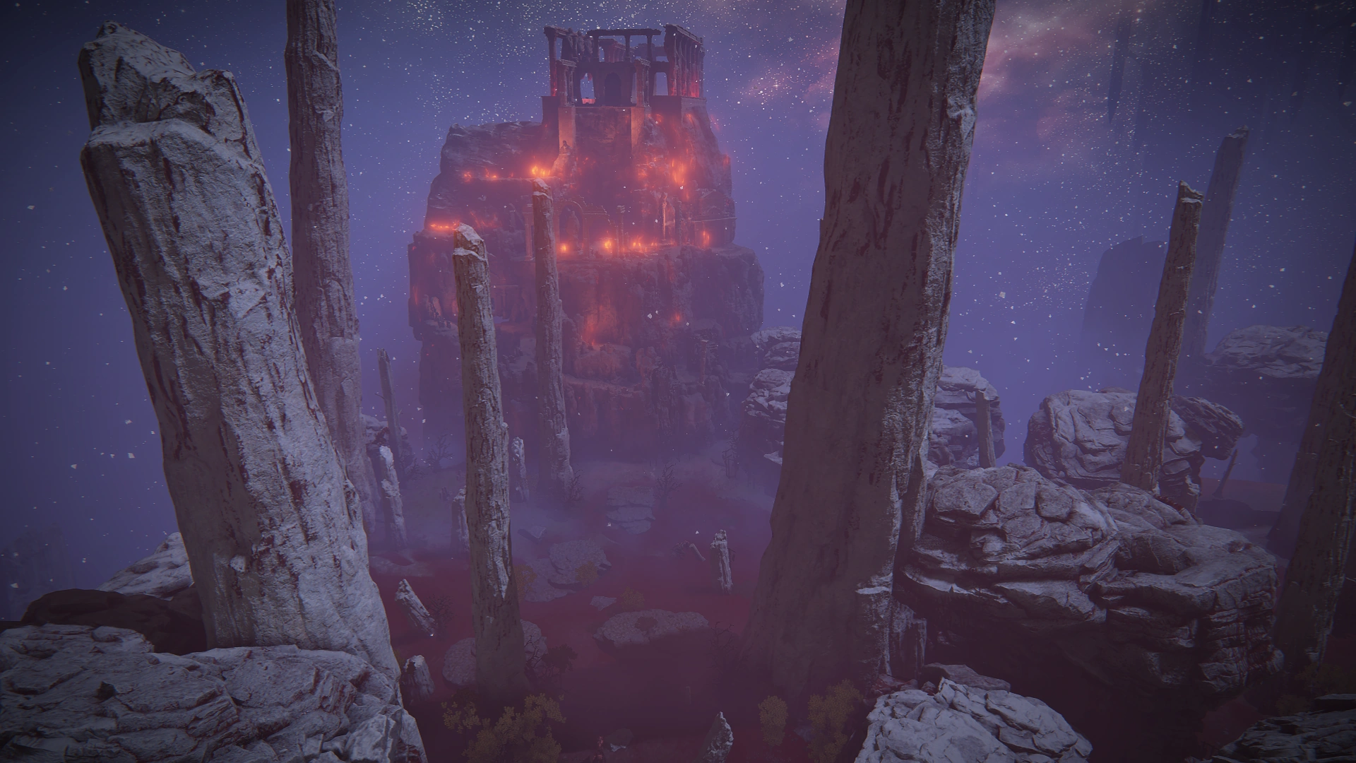 A large part of the area is taken up by a blood-red lake, which is the habitat of many abominations. The Mohgwyn Dynasty Mausoleum juts out of the west side of the island, housing the Lord of Blood and his vassals.