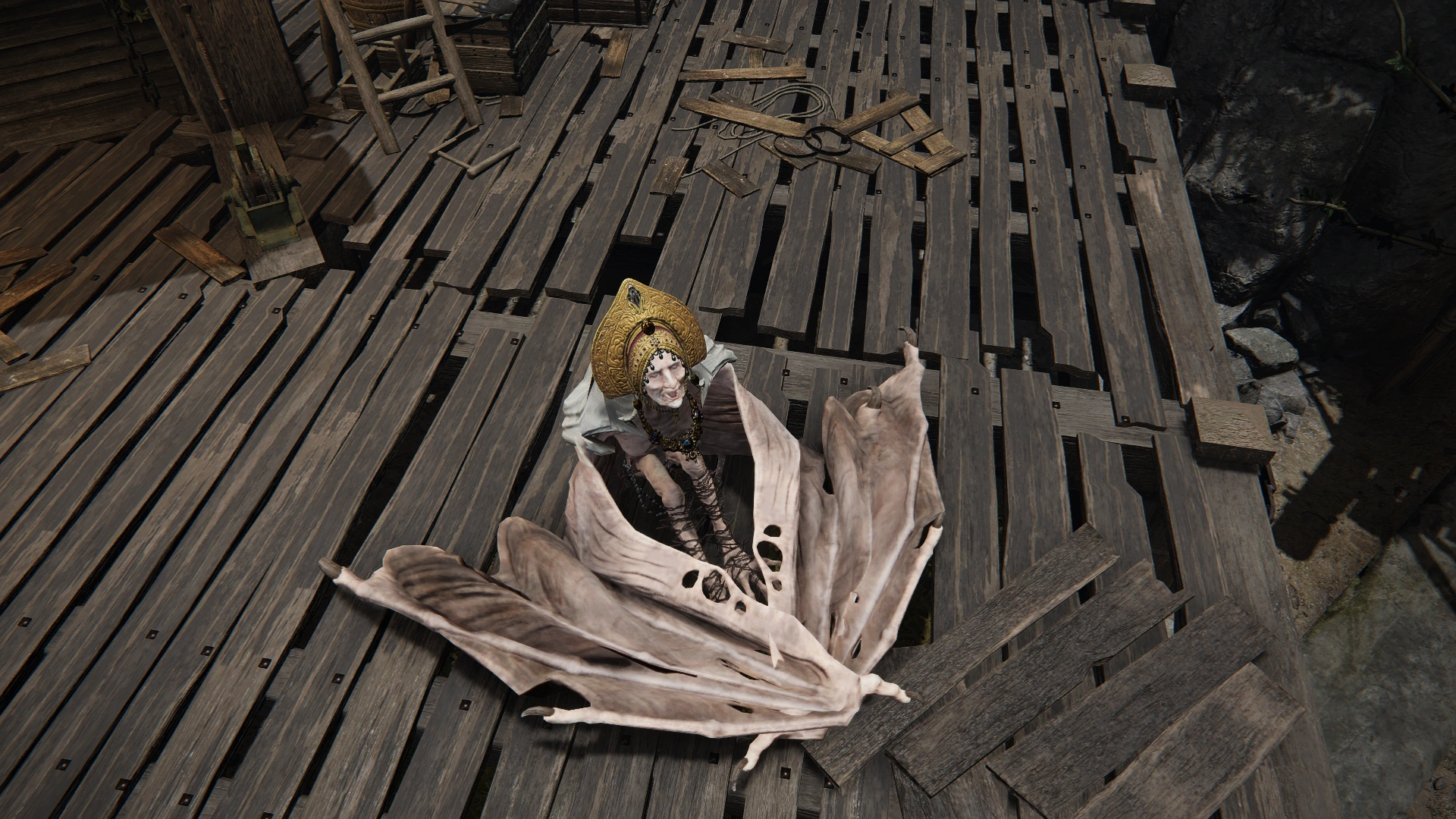 Operatic Bats seem friendly but will turn hostile when the player comes close. Those with long, grey hair can produce a poisonous mist, while the ones with crowns can toss Large Glintstone Scraps and cast a Death Sorcery similar to Rancorcall.