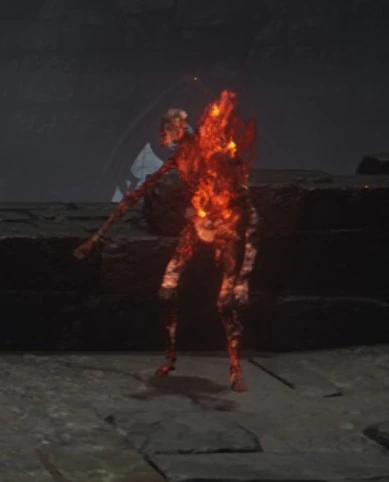 Perpetually burning corpses found most commonly in Caelid, but also in the East Windmill Pasture in Altus Plateau. They will run at the player when they see them before exploding.