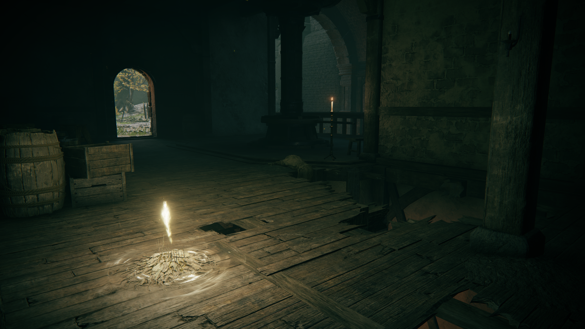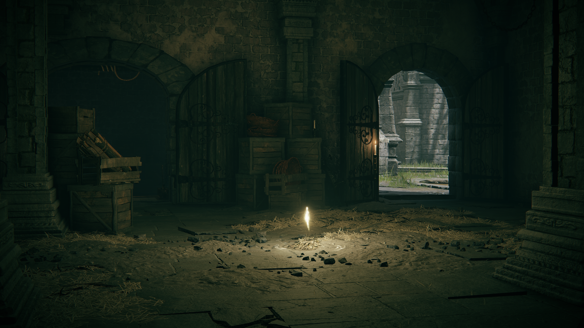 The Stormveil Castle walls when viewed from the Chapel of Anticipation