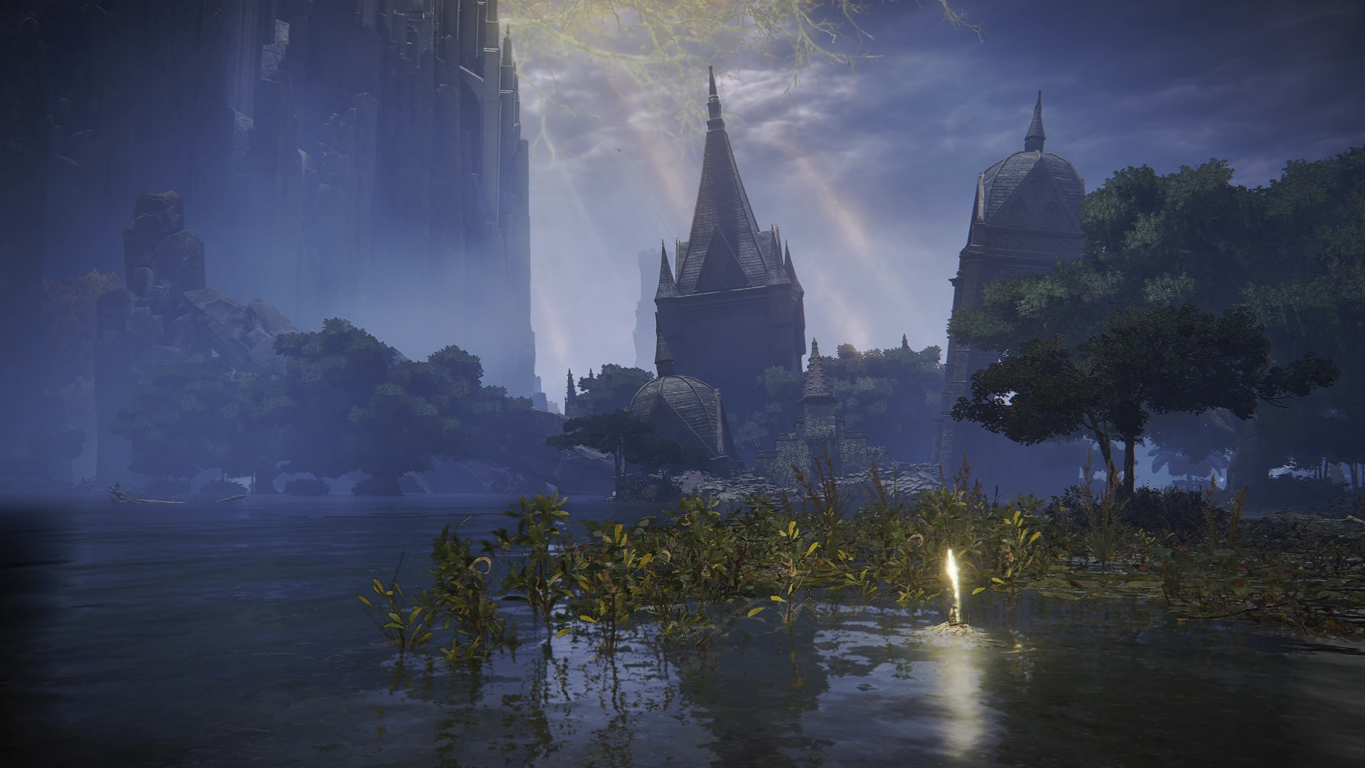 A ruined temple complex half-sunken in the lake, south-west of the Academy of Raya Lucaria. Just north of the ruins is a small island where a Glintstone Dragon can be found slumbering.