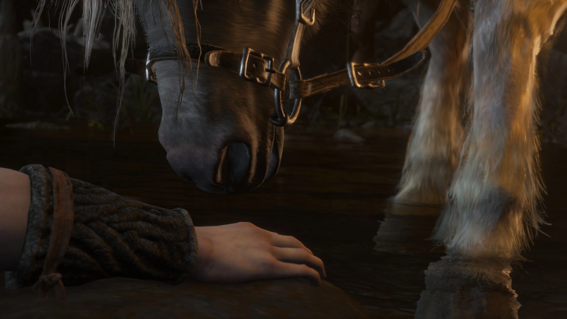 The Tarnished is reunited with the woman once more, and she introduces herself to them as Melina. Seeing that the Tarnished is maidenless, she offers to play the role of a Finger Maiden, allowing the Tarnished to convert the Runes they collect from their enemies into strength. In return, she requests that the Tarnished bring her with them to the foot of the Erdtree.[3] To aid them further, Melina grants the Tarnished a whistle which will allow them to call upon her spectral steed, whose name she reveals to be Torrent. Melina further explains to the Tarnished that she is searching for a purpose given to her by her mother inside the Erdtree long ago, and the reason she lives, despite her burnt and spectral state.[4] She advises the Tarnished to seek the Great Runes: shards of the shattered Elden Ring, currently held by the Demigods.[5]